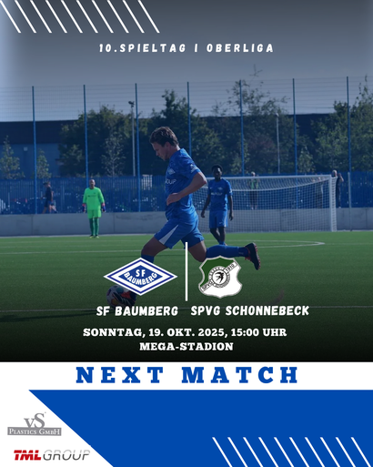 Das nächste Heimspiel der Sportfreunde Baumberg findet am kommenden Sonntag, 19. Oktober 2025 um 15:00 Uhr gegen die Spvg Schonnebeck.