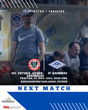 Mit dem Selbstvertrauen aus zwei Erfolgen in Serie treten die Sportfreunde Baumberg am kommenden Spieltag beim VfL Viktoria Jüchen-Garzweiler an. Während die Gastgeber zuletzt ein 1:1-Unentschieden gegen den SC St. Tönis erzielten, feierten die Sportfreunde in der vergangenen Woche einen 2:0-Heimsieg über den TSV Meerbusch. Nur vier Punkte trennen die beiden Mannschaften in der Tabelle der Oberliga Niederrhein.