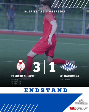 Am Freitagabend waren die Sportfreunde zum letzten Auswärtsspiel im Kalenderjahr 2025 beim Tabellenletzten SV Biemenhorst zu Gast. Trotz früher Führung durch Ben Harneid in der 11. Minute gingen die Sportfreunde mit einem 2:1-Rückstand in die Halbzeit, der kurz nach Wiederanpfiff von den Gastgebern auf 3:1 ausgebaut wurde. Damit verlieren die Sportfreunde ihr sechstes Saisonspiel und rutschen auf Tabellenplatz 7 – punktgleich mit dem SC St. Tönis und dem VfL Jüchen-Garzweiler.
