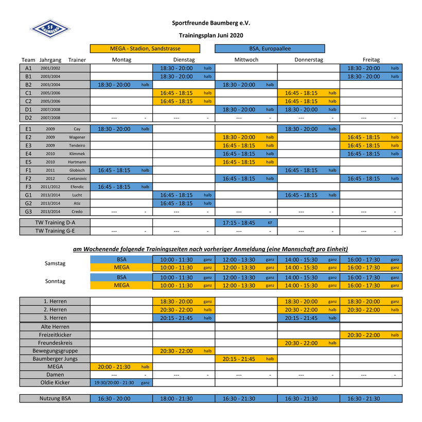 Trainingsplan im eingeschränkten Trainingsbetrieb